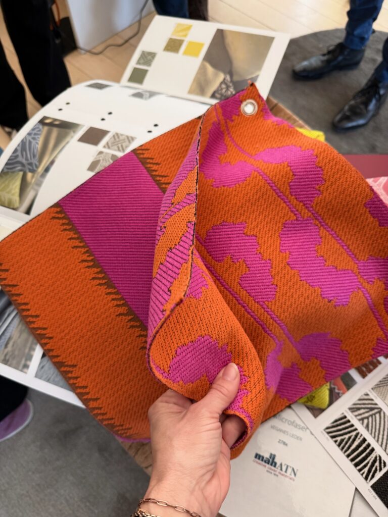 Das Unternehmen blickt auf eine Geschichte von über 200 Jahren zurück und begann als Sattlerbetrieb, der Kutschen auskleidete. Auch heute, unter der Leitung von Marcia Gottlieb – die ebenfalls anwesend war –, werden Fahrzeuge, Schiffe und unzählige Möbel mit den hochwertigen Stoffen von mah-ATN ausgestattet. Ihr beeindruckendes Sortiment umfasst rund 14.000 Materialien – von Kunstleder über Echtleder bis zu Outdoor- und Spezialstoffen – die in europa Produziert werden.