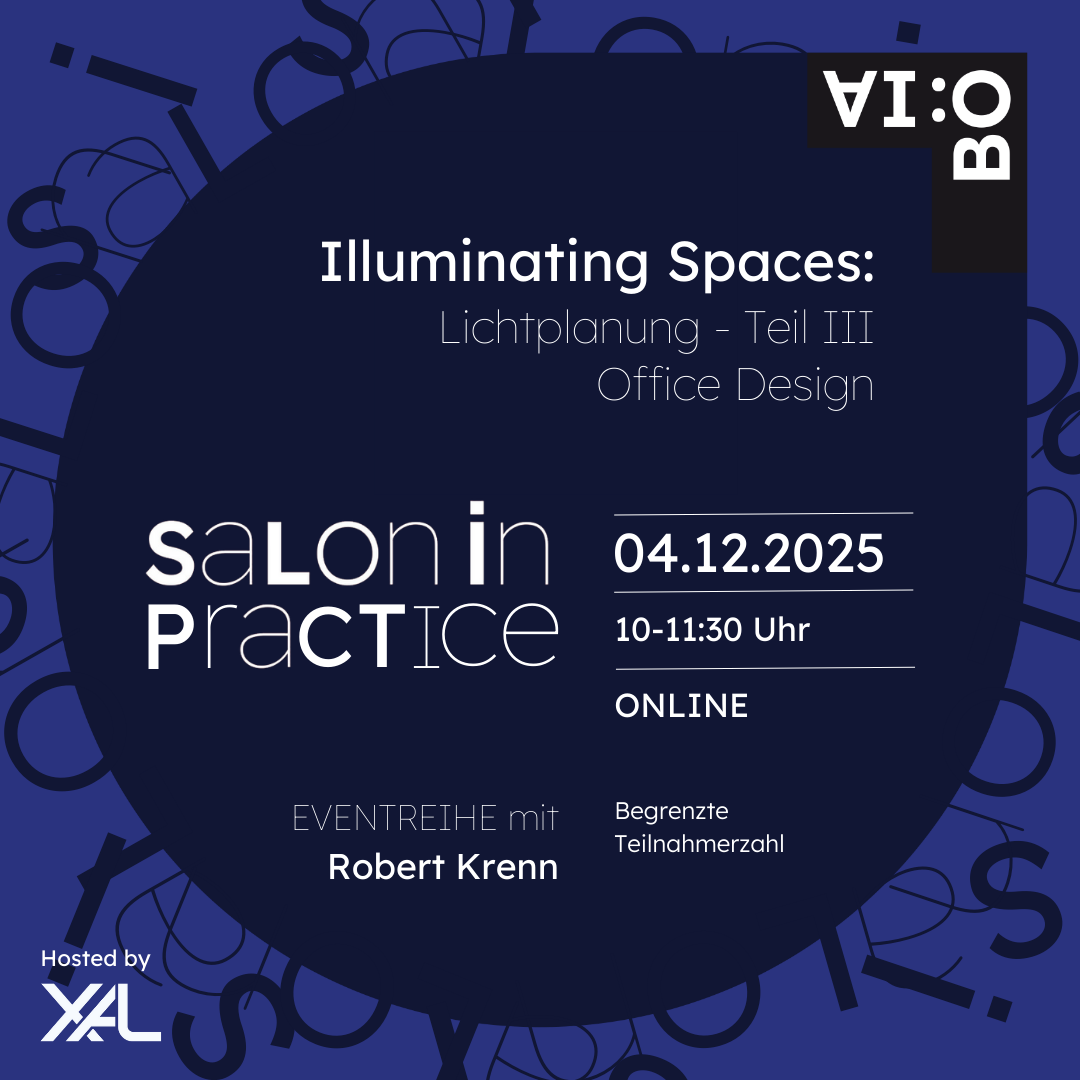 Wir schließen die Salon in Practice-Reihe mit einem Fokus auf Office Design ab. Gemeinsam mit Robert Krenn, Head of Lighting Solutions bei XAL, erarbeiten wir in diesem exklusiven Online-Workshop eine Guideline zur Lichtplanung von Arbeitsräumen. Nach den wertvollen Einblicken vom Experten bleibt noch ausreichend Zeit für eine Q&A-Session sowie individuelle Tipps.