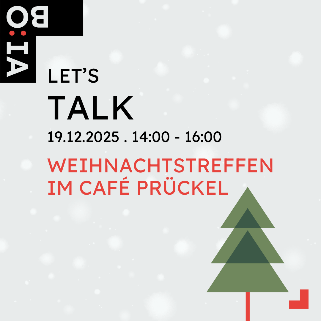 Im Dezember findet unser Let’s Talk in einem besonderen Rahmen statt: Wir laden unsere Mitglieder herzlich zu einem vorweihnachtlichen Austausch ins traditionsreiche Café Prückel ein.