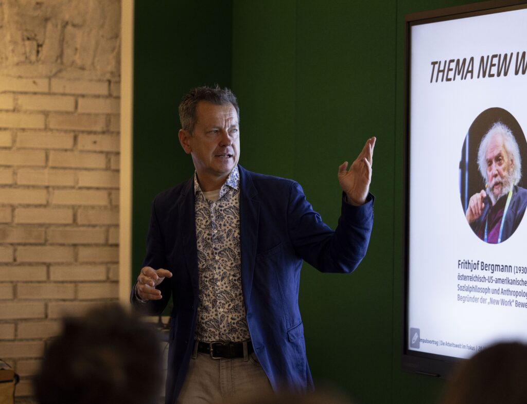 Martin Luptacik widmete sich der Frage, wie und in welchen Räumen wir künftig arbeiten wollen. Er machte deutlich, dass zukunftsfähige Arbeitsumgebungen nur dann entstehen können, wenn nachhaltige Raumstrategien, die Transformation bestehender Gebäude und ein tiefes Verständnis der Organisationskultur zusammengedacht werden. Erst dieses Zusammenspiel ermöglicht Räume, die Veränderung zulassen und produktive Prozesse fördern.